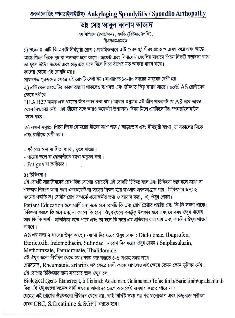 Ankyloging Spondylitis/ Spondilo ArthopathyBy dradmin / February 26, 2026 Ankyloging Spondylitis/ Spondilo Arthopathy